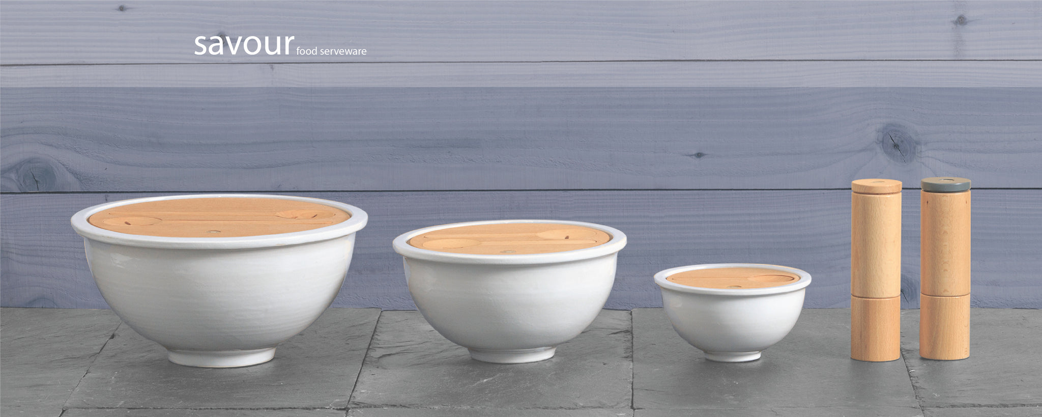 Present your food in style with some beautifully handcrafted serveware from our Savour collection. We offer unique Lidded Salad Bowls with integrated Salad Servers, Bread and Oil Servers, Condiment Grinders, Cheese Platters and Lazy Susans.
